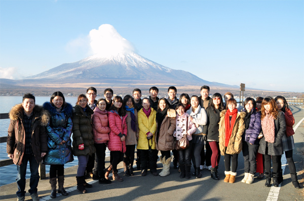 優勝國貿一行24人在富士山腳下合影留念。