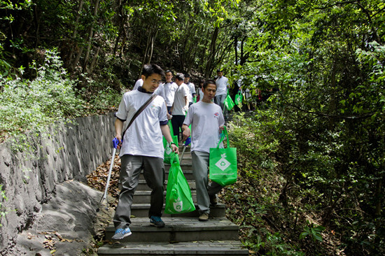 中坡山森林公園位于寧波西部的四明山上,是一個免費對外開放的森林公園,好山好水好空氣,深受寧波老百姓喜愛,周末園內(nèi)人來人往,非常熱鬧。但比較遺憾的是,公園內(nèi)步道兩邊飲料瓶、食品包裝袋等垃圾較多,與自然美景很不協(xié)調(diào)。4月11日,我集團和寧波市外經(jīng)貿(mào)局工會聯(lián)合,首次走進中坡山森林公園,開展撿垃圾活動,倡導(dǎo)環(huán)境清潔理念,受到游人和當(dāng)?shù)佚堄^鄉(xiāng)政府的肯定。時隔半個月后,我集團聯(lián)合寧波中信保公司團委,雙方組織了30多位同事,再次走進中坡山森林公園。
