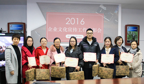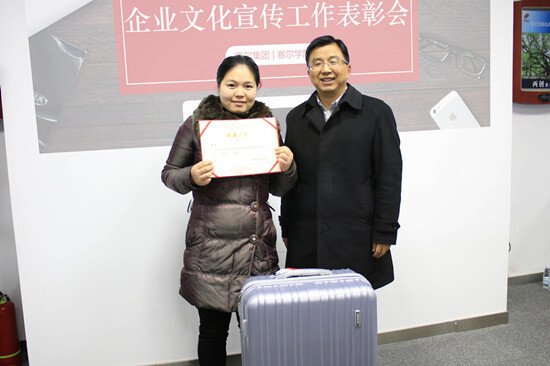 2016年是集團企業文化宣傳工作扎實推進的一年。各子公司、各部門向集團季刊、中英文月報、周報、網站、微信等自媒體累計投稿486篇,總計40余萬字,全年共刊發《賽爾志》4期、中英文月報各12期、賽爾周報52期、完成“賽爾人”稿件55篇,順利完成企業英文網站改版。因文化宣傳工作表現出色,賽爾國貿、綠時進出口、優景進出口、優勝國貿榮獲2016年度“企業文化宣傳先進單位”稱號,賽爾國貿傅麗君、優訊進出口俞飄飄等5人被評為“企業文化宣傳先進個人”;優景進出口歐陽圓圓、倉儲物流部鄭曉亭等摘得年度“優秀通訊員”獎項;賽爾國貿傅麗君還憑借對文宣工作的責任、熱愛和扎實的寫作功底,成為2016年度《賽爾志》優秀欄目編輯。會場上大家用熱烈的掌聲,為所有積極參與文宣工作的小伙伴拍手叫好。