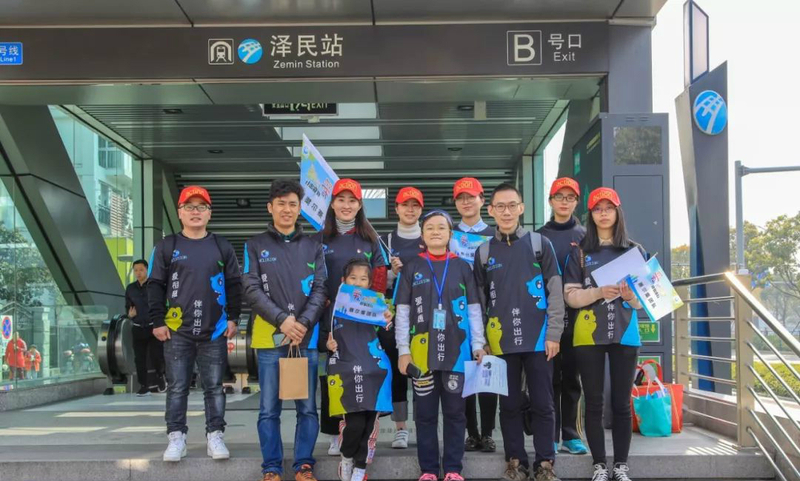上午9點,賽爾志愿者在澤民地鐵站與星寶家庭匯合,在直播主持人帶領下,向群眾宣傳自閉癥和無障礙出行的相關知識,并協(xié)助星寶乘上地鐵,幫助他們順利抵達四明中學運動場。