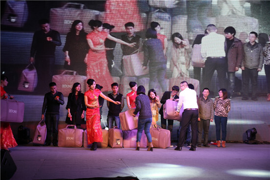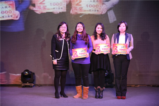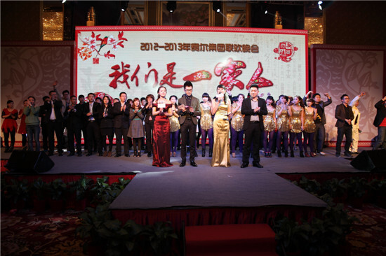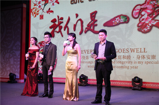 2月23日晚18:30,集團(tuán)2012-2013度“我們是一家人”主題大型聯(lián)歡晚會(huì)在高貴典雅的T臺(tái)Fashion秀中拉開序幕。集團(tuán)全體董事及600多名員工參加晚會(huì)。晚會(huì)由晚宴、節(jié)目表演、幸運(yùn)抽獎(jiǎng)、節(jié)目評(píng)比等環(huán)節(jié)組成。晚會(huì)主持人由集團(tuán)行政人事部胡靜靜、賽爾國貿(mào)吳錫東、優(yōu)景進(jìn)出口付潔、優(yōu)勝國貿(mào)王淑樂四人擔(dān)任。