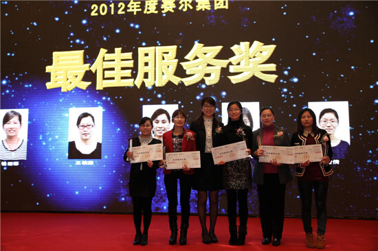 總裁助理朱玲為行政人事部、單證部的最佳服務獎獲得者頒獎