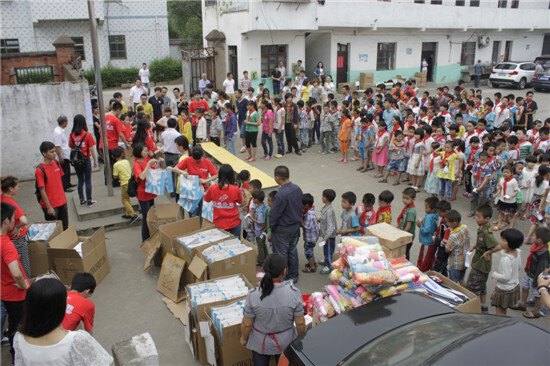 當(dāng)天天氣異常悶熱,但絲毫沒有減少志愿者們的熱情。上午9:10分愛心捐贈活動正式開始,大家積極有序地給小朋友們分發(fā)物資。當(dāng)天和我們一同前往的還有義務(wù)市弘寶行、義務(wù)市新生代協(xié)會、義務(wù)藍俊志愿者協(xié)會等志愿者。