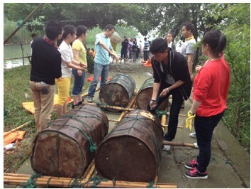 扎竹筏,考驗(yàn)各位的聰明才智的時(shí)候到了!最經(jīng)典的臺(tái)詞:我們組已經(jīng)順利拿到分?jǐn)?shù)了,在旁邊休息一下,等著看別人落水!