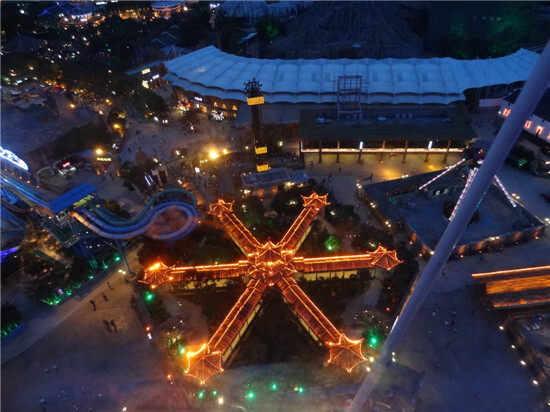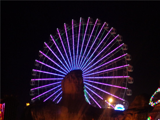排了半個小時的隊(duì),終于坐上了摩天輪,在摩天輪最頂端看到的夢幻谷,格外美麗