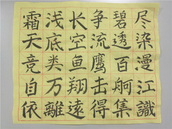 蒼勁有力的中國字整齊地落在井格里