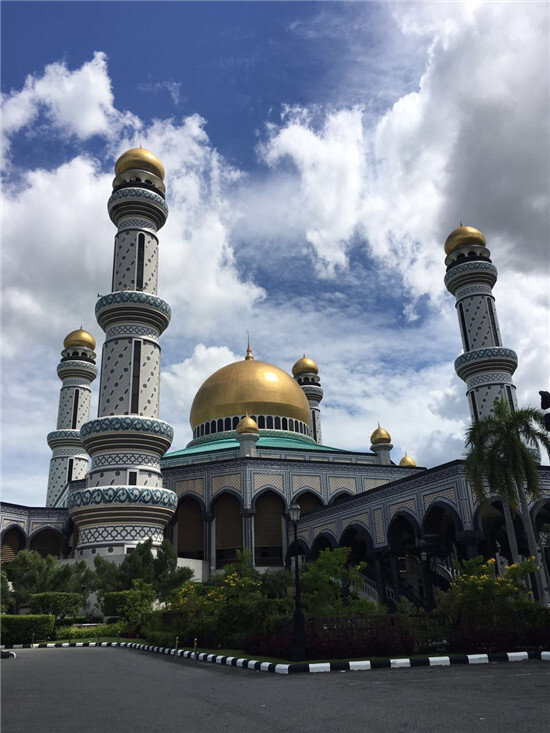 結束了沙巴的美好三天,我們轉機來到了土豪國文萊。上午,導游粗略帶我們感受了下文萊的皇宮、清真寺和國家博物館,下午,當我們入住文萊帝國酒店的時候,大家才知道什么是真的土豪。帝國酒店里有5個游泳池、高爾夫球場、兒童游樂場,還有長長的沙灘和大片的植物園,光是從酒店前臺到我們住的房間,就得用電動小車來回接送。酒店設施也都是頂配的,大理石立柱足足有6層樓那么高,連扶梯的護欄都是純18K金鑲嵌整塊的貓眼石打造的,真的是顛覆了我們對酒店的概念。