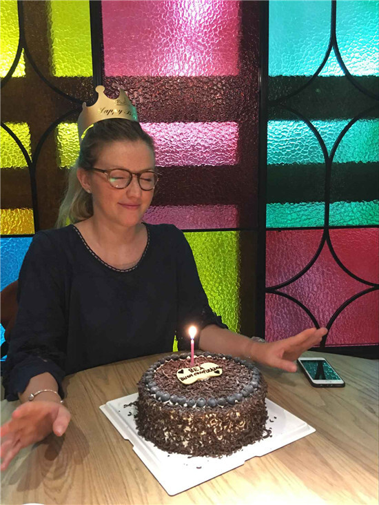 9月22日,工作之余,綠時業務三部的周君、賈慧等給來訪的意大利M客人Beatrice過了一個開心愉悅的25歲生日。主人公許愿,大家齊唱生日歌,歡笑滿場。工作上,我們做到了嚴謹細致的服務,生活中也對客戶處處關心,加深了同客戶的親密聯系,提升了客戶對我們的信任感,更好地服務了客戶。祝愿客戶在異國他鄉有一個難忘的回憶。