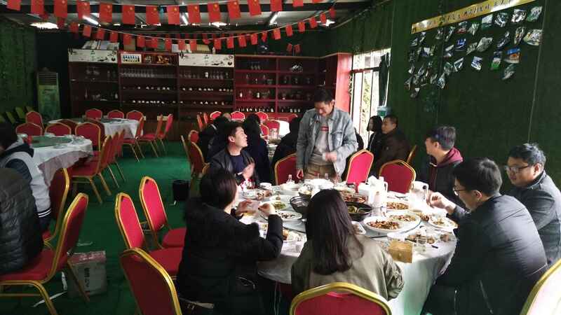 此次部門活動的重點就是烤全羊大餐。由于醫院要求必須空腹體檢,所以很多一早上都沒有進食的小伙伴們很快就開動了起來。主要負責烤烤全羊的是一位店里的大爺,那手法甚是嫻熟,一頭羊被烤得可謂是色香味俱全,再加上碰到一群已經餓的前胸貼后背的小伙伴們,烤全羊一上桌就被大家一掃而空。之后再配上當地的農家樂美食,一頓美味的大餐很快就在大家的歡聲笑語中被消滅了。