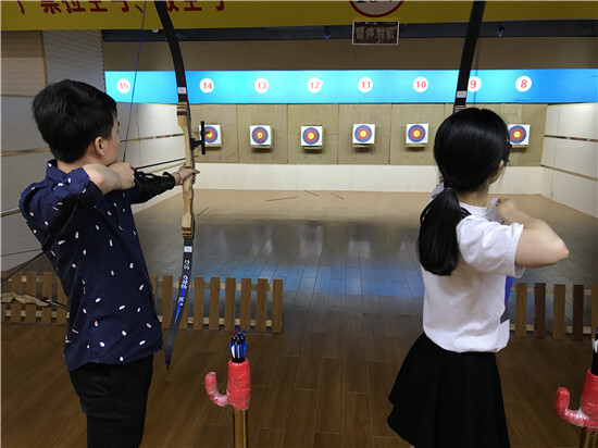午餐過(guò)后,大家便來(lái)到了甬道順豐射箭館,體驗(yàn)射箭的樂(lè)趣。在經(jīng)過(guò)教練簡(jiǎn)單的輔導(dǎo)之后,小伙伴們一個(gè)個(gè)有板有眼地拉起了弓,瞄準(zhǔn)靶子射箭。結(jié)果由于弓弦太緊,放箭的時(shí)候總是會(huì)手抖,導(dǎo)致箭常常射偏,有的正中靶心,也有的射到了墻上,最終Linda童鞋以其健壯的臂力拔得頭籌!