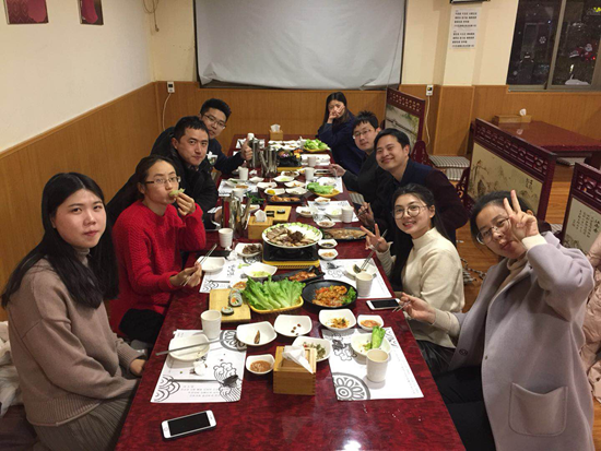 聚餐總少不了聊天說(shuō)笑,大家嘮嘮家常,說(shuō)說(shuō)最近的喜事趣事煩心事,都覺(jué)得很開心。正像一家人其樂(lè)融融地吃著團(tuán)圓飯,了解各自工作以外的生活,同時(shí)也讓方葉同學(xué)更好地融入我們。