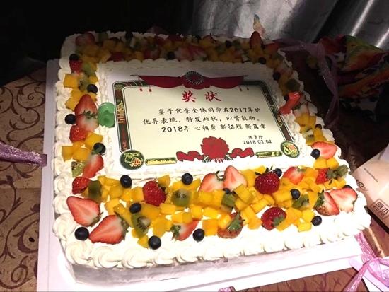 中場時間,工作人員端上了6周年蛋糕,陳勇珍副總裁還特別為此題了字,表達了對優景大家庭在2017年取得驕人業績的肯定以及2018的新年祝愿。蛋糕趴結束,Bose音響、掃地機器人、空氣凈化器、電子閱讀器、行李箱,還有金額不等的紅包就上場啦,讓大家拿獎拿到手軟,晚會的氣氛也一直處于高潮中。最后,侯總還額外增加了特等獎,以鼓勵大家更加努力,團結奮進,再創佳績。