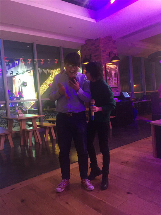 大家還一起合唱《朋友》、《我相信》等曲目,還有可愛的小伙伴借著《月亮代表我的心》現(xiàn)場表白,一波又一波的驚喜將氣氛層層點燃。《大瞎話》、《終極密碼》兩大經(jīng)典游戲high翻全場,懲罰項目歇斯底里,驚現(xiàn)“女女表白”、“男版瑪麗蓮夢露”、還有兩次被女生拒絕還堅持詠唱駱賓王的《詠鵝》的深情王子。大家紛紛拿起手機,拍照、錄像,記錄這些珍貴的畫面。