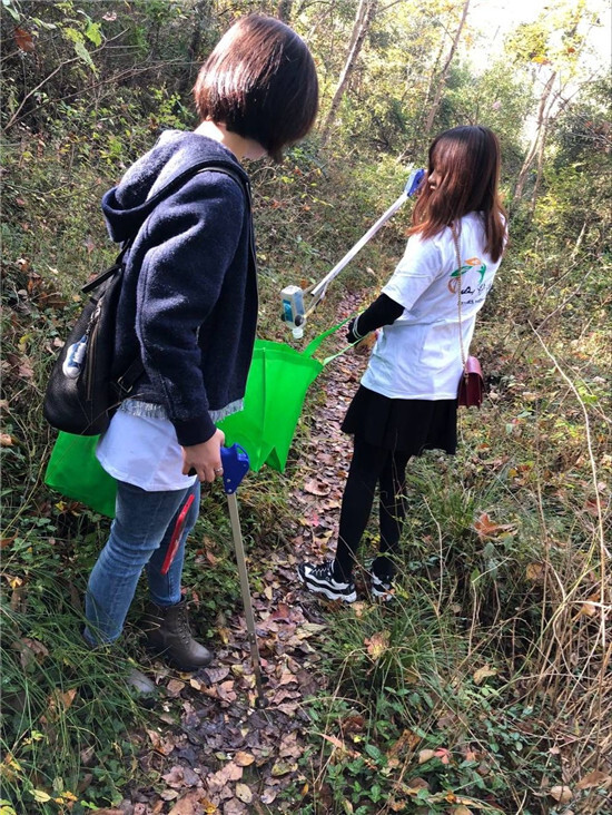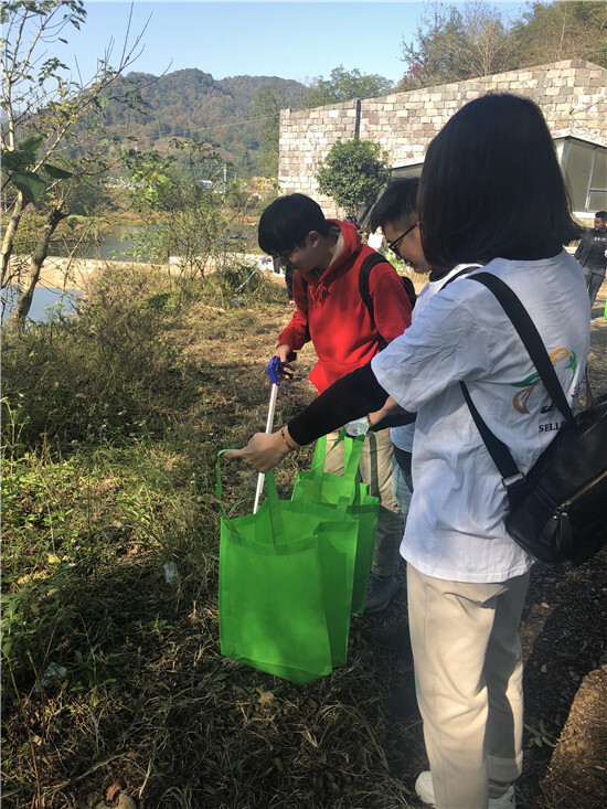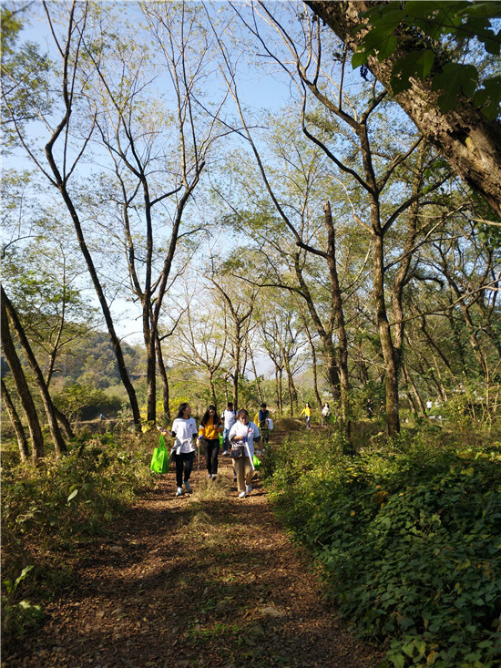 一個(gè)拐角,一條林道,鋪滿著一地綠黃相間的秋色,含蓄奔放但不張揚(yáng);一個(gè)白色塑料袋,一罐廢棄鋁制可樂(lè)瓶,或深或淺地落在有著百年古樹(shù)歷史的林間。油彩的筆尖,深深淺淺的細(xì)細(xì)涂鴉,描繪著晴江岸的色彩斑斕;一件小白T,一枚夾子,一個(gè)綠色環(huán)保袋,賽爾拾垃圾小分隊(duì)踏著古道,維護(hù)著晴江岸的美麗風(fēng)景。