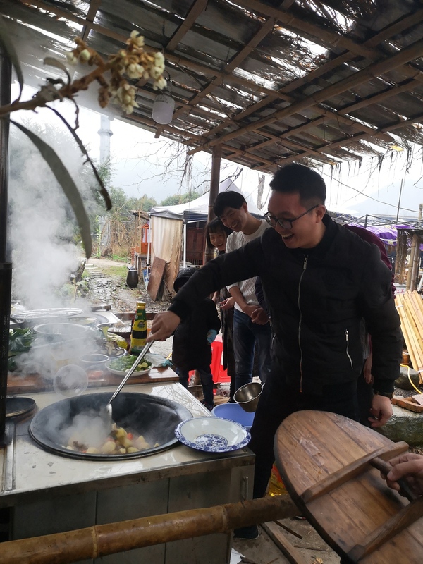 還未達到目的地,大家就迅速成立了“廚房真功夫組”、“BBQ組”、“手工餃子組”、“水果組”,摩拳擦掌,躍躍欲試,準備在戰(zhàn)場上開辟新天地。由張旭東、盧堂翠帶領(lǐng)的“廚房真功夫組”全都是廚藝了得的大廚,做出了姜汁皮蛋、白切雞、清蒸鱸魚、土豆燉牛肉等一道道色香味俱全的美味佳肴。每出一道菜,大家都蜂擁而上,一掃而光。由劉珊帶領(lǐng)的“BBQ組”都是燒烤達人,只要高喊一聲“烤好了”,覓食的人群們就會聞聲而來;“手工餃子組”出鍋后的香味讓人垂涎欲滴;“水果組”的手藝無比驚艷,有千禧果制作的兔子,有哈密瓜自成一體的水果拼盤。還有花費了近三個小時的烤全羊作為壓軸隆重登場,在即將出爐的那一刻烤全羊周圍圍滿了人群,共同等待品嘗美食。