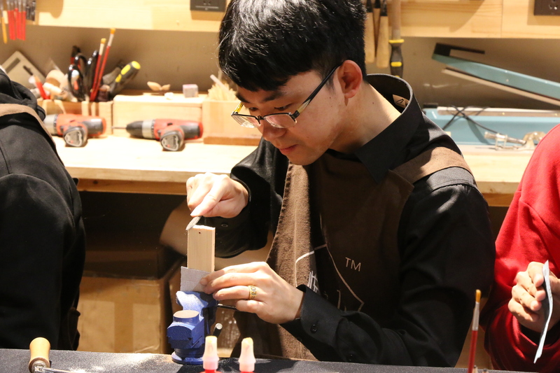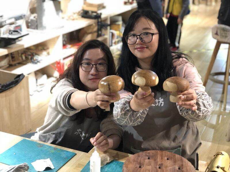 這是一個(gè)明媚的上午,我們齊聚在一家充滿文藝氣息的小店里,店里擺設(shè)著各式各樣的手工雕刻作品。大家各自選好了想要做的作品,然后穿上了美美的圍裙,這一刻,請(qǐng)叫我們“傲嬌的小木匠”。整個(gè)制作過(guò)程中,大家耐心細(xì)心地打磨著、探討著、組裝著。在這歡聲笑語(yǔ)的氣氛中,大家暫時(shí)忘掉了煩惱,專心致志地完成自己的作品。完成作品之后便是愉快的午餐時(shí)間,大家互相聊著工作和生活中的點(diǎn)滴趣事。