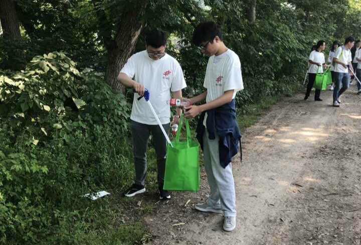 到了晴江岸之后,映入眼簾的是清澈湍流的河水、郁郁蔥蔥的大樹以及碧綠青翠的草坪,令人身心舒展、心曠神怡。而夾雜在其中的各種垃圾顯然破壞了這份大自然帶來的美景,大家紛紛拿起自己的“裝備”,將被人隨意丟棄在路邊的各種塑料袋、易拉罐、煙頭等垃圾收入“囊”中,不一會兒所有拎在手上的垃圾袋已被裝得滿滿當當。一路上老員工跟新員工分享著在賽爾的趣事,新員工跟老員工訴說著對未來的設想,伴隨著陣陣歡聲笑語,大家干勁十足。
