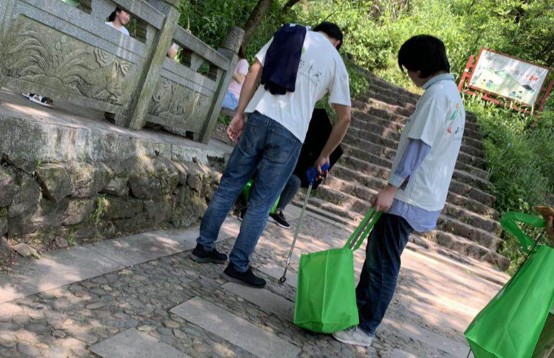 到達(dá)目的地后,大家拿到工具便開始了步行。得益于前兩次的山野清風(fēng),我們這次一路走來并沒有發(fā)現(xiàn)很多垃圾,只有路邊和歇腳的涼亭能發(fā)現(xiàn)少許垃圾。