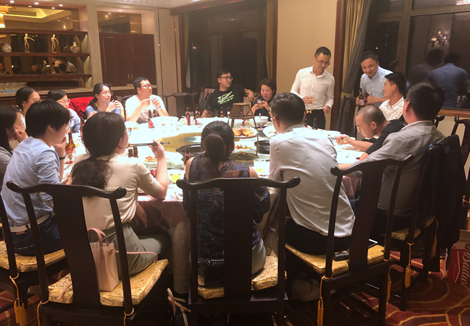 在吃飯的時候我們開玩笑嘮家常,就像一個大家庭,沒有級別的障礙,暢所欲言。不知不覺已經(jīng)很晚了,大家喝得盡興、聊得暢快、聚得開心。