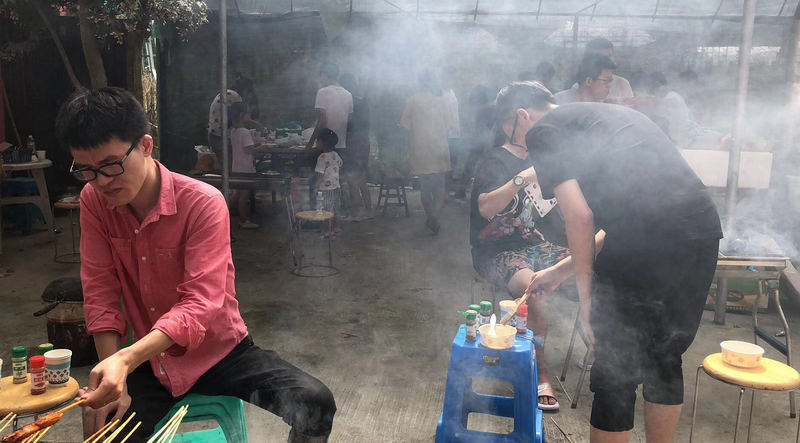 中午,大家一起在邊上不遠處的紅興家庭農場舉辦了自助燒烤。也許是剛打完CS急需補充能量,也許是燒烤的小伙伴技術精湛,也許是食材太過豐富多樣,也許是大家在一起吃喝玩耍,大家都吃得格外的香,格外的開心。