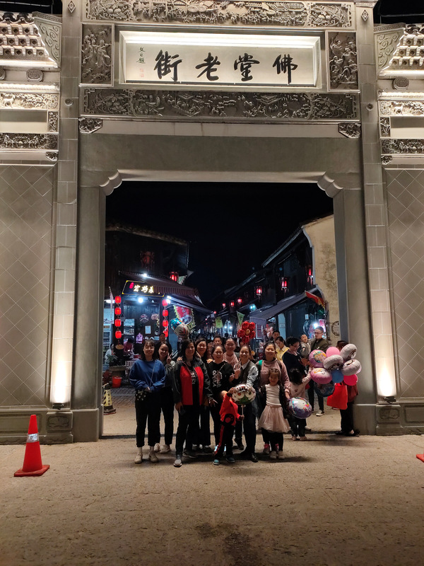 晚飯過后,我們轉戰去了義烏佛堂古鎮。正值佛堂一年一度的十月十民俗文化節,佛堂老街熱鬧非凡,人流穿梭不息,老街上賣的各種小玩意兒、小擺件也讓人不由自主地懷念起童年的快樂時光。江邊燈火通明,人頭攢動,大家都在欣賞浮橋上的3D燈光秀,流光溢彩,美不勝收。
