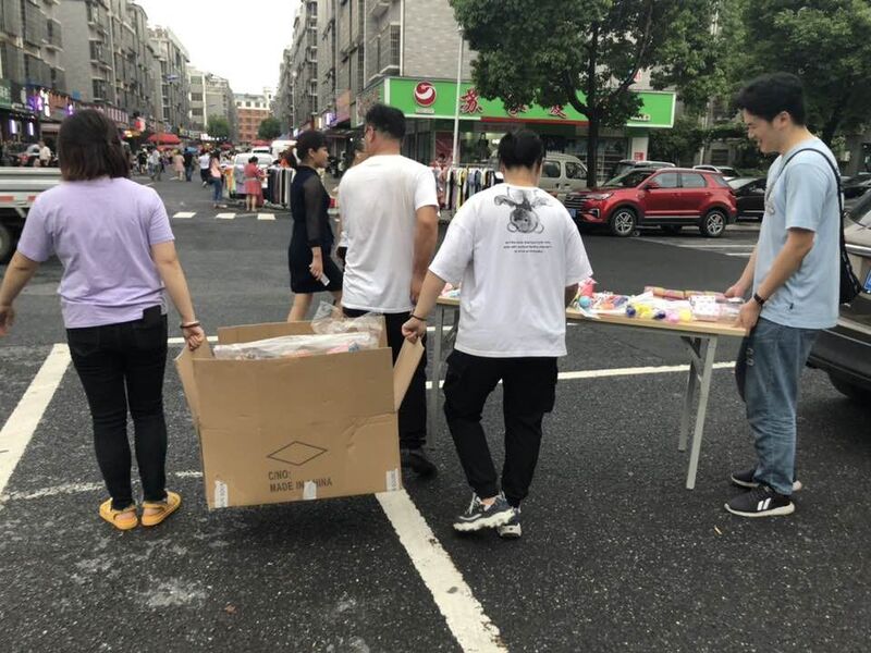 6月5日下班后,大家整理了自己覺(jué)得有賣(mài)點(diǎn)的樣品,去食堂借了擺臺(tái),前往此次擺攤地點(diǎn)——新后傅夜市。