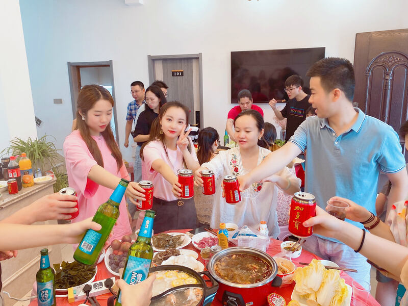 中午,DIY火鍋正式開始了。紅油油的辣湯被電磁爐燒得冒泡,各種食材在里面盡情地釋放自己的原汁原味,另一半的清湯里則煮著象山最具特色的海鮮。麻辣與鮮香的碰撞,四季與火熱的會面。現場一片熱火朝天的氛圍,大家舉杯共祝下半年的業績蒸蒸日上。