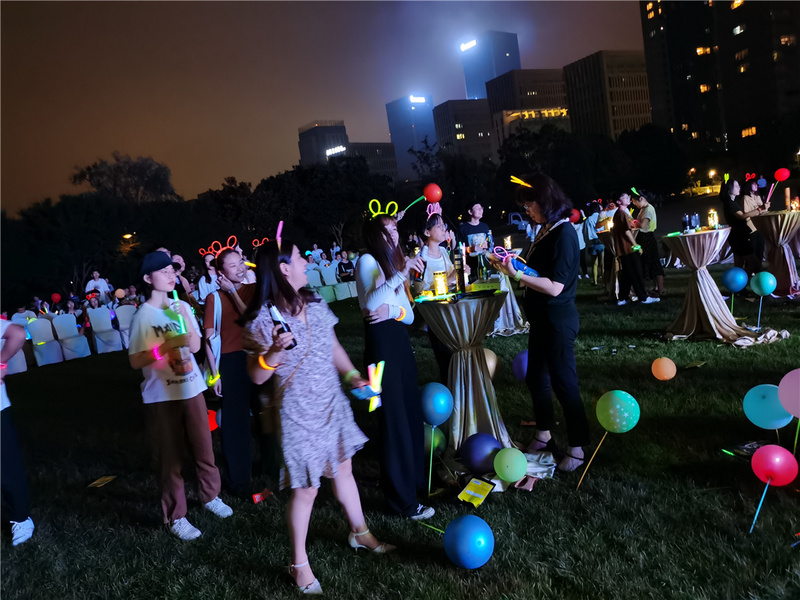 晚宴上,公司表彰了上半年優秀團隊以及優秀個人。 晚宴過后的雨中音樂節將氣氛推向了高潮,氣球燈光,啤酒炸雞,性感MC,爆炸電音,雨中起舞,氣氛正好。