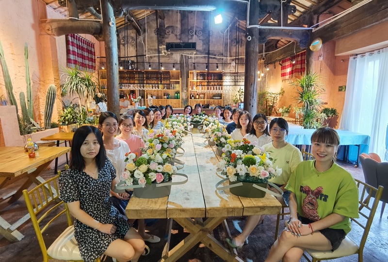 七月里甚是難得的涼爽一日,大優(yōu)訊財務(wù)部來到有“田園鄉(xiāng)夢”之稱的李祖村,領(lǐng)略了傳統(tǒng)染色工藝扎染以及手工布鞋的獨特魅力,品嘗了傳統(tǒng)制糖工藝梨膏糖,在這里感受時光歲月賦予它的韻味。然后開始了此次團建的重頭戲——插花。在插花過程中,大家耐心地修剪、配色,互相幫助指導(dǎo)。活動結(jié)束,大家都擁有了屬于自己性格特色的花籃,有熱情奔放派,有沉靜內(nèi)斂派,也有自然生長派……