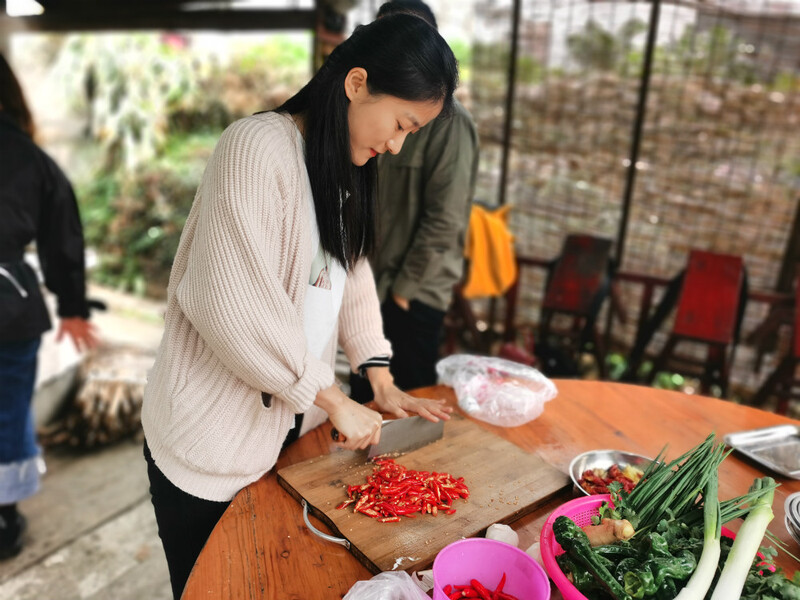 11月的忙碌接近尾聲,優勝義烏辦3個小組共同組織了一次有趣的團建。大家挑選好自己想吃的和會做的菜肴,由金珍珍負責統一采購食材并帶到本次活動的目的地——浦江上河。我們的土灶亭子就在小河邊上,濕潤新鮮的空氣讓人心曠神怡。休息片刻后,我們各自分工,開始忙活起來。