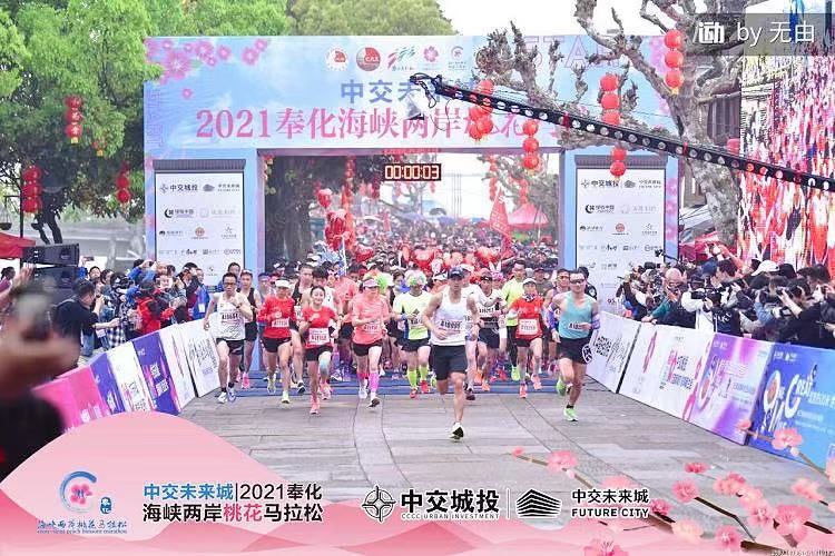 4月3日上午, 2021奉化海峽兩岸桃花馬拉松在奉化剡江河畔浪漫開跑。這是今年浙江省首個馬拉松比賽,吸引了來自國內和英國、美國、荷蘭、加拿大等14個國家的8000多名跑步愛好者參加。