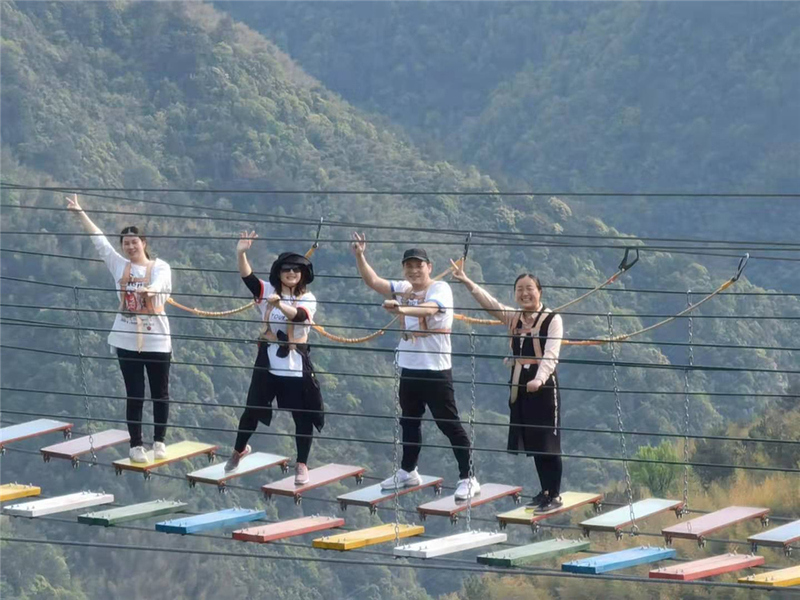 云霧繚繞的盤(pán)山路,香甜可口農(nóng)家飯菜,一決高下的乒乓球?qū)Q,拄著拐杖爬山的波哥,都是此行的焦點(diǎn)。讓人印象最為深刻的是通過(guò)高空筏道的集體任務(wù),在大家的共同努力和互相幫助下,大家順利完成任務(wù)。這個(gè)團(tuán)隊(duì)項(xiàng)目讓我們真正體會(huì)到了有些事情單憑個(gè)人力量是根本無(wú)法完成的,只有發(fā)揮團(tuán)隊(duì)合作精神,挖掘隊(duì)內(nèi)每個(gè)人的潛力,才能讓團(tuán)隊(duì)力量最大化。雖然戶(hù)外拓展的時(shí)間較短,但從這些拓展項(xiàng)目中,我們學(xué)會(huì)了如何挑戰(zhàn)自我、激發(fā)潛能,如何有效分工、團(tuán)隊(duì)協(xié)作,如何進(jìn)行時(shí)間管理。