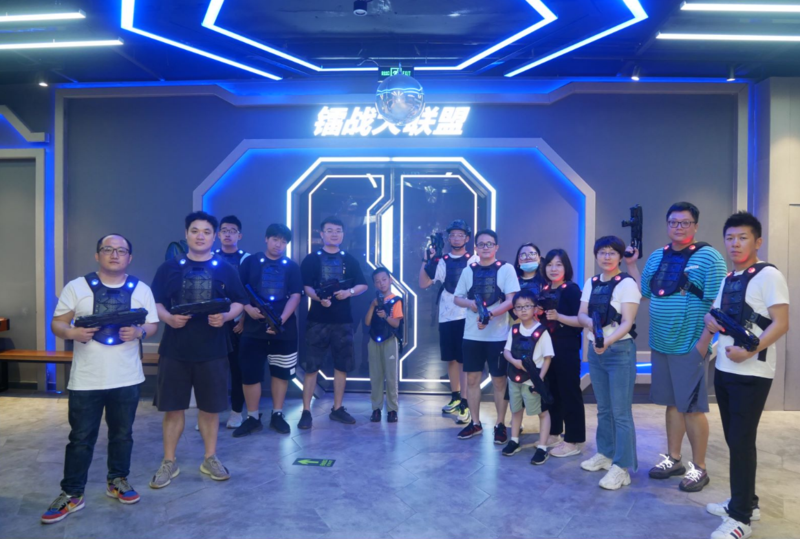 隨后,我們來到了綠地繽紛城的高科技“鐳戰(zhàn)大聯(lián)盟真人cs”。大家按順序穿好了感應(yīng)服,分成兩隊后,教官開始給我們講解槍支使用方式。試槍結(jié)束后,“戰(zhàn)爭”便開始了。全程分為四種主題模式,四場積分累計,每場大概15分鐘左右,中間有休息的時間,每場結(jié)束都能在外面看到個人團(tuán)隊的戰(zhàn)績。大家都非常認(rèn)真,每場結(jié)束后,各個大汗淋漓,氣喘吁吁,極大的運(yùn)動量讓大家釋放了在工作中的壓力。