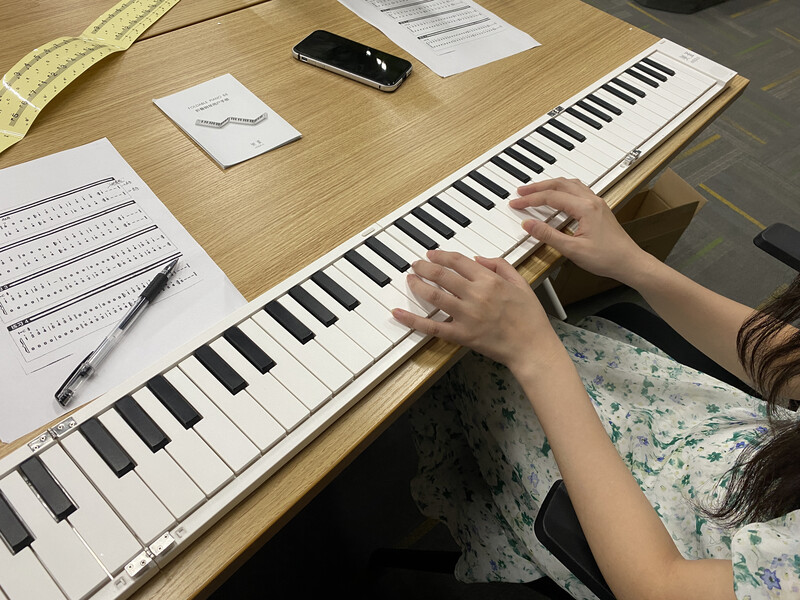 7月5日,期待已久的愛樂社折疊鋼琴課程開課啦!為我們授課的是一位俏皮可愛的年輕老師,為學琴之路增添了一道靚麗的色彩。