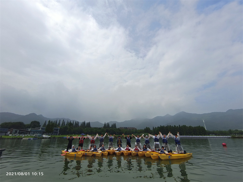 第二天刺激的活動開始了。皮劃艇和帆船真的都是十分考驗團隊配合的運動,在皮劃艇運動中,我們分成了四個組進行接力賽,各個小組通力合作,永爭第一,充分體現了優德人不怕困難、勇往直前的精神!在帆船比賽中,每個人分配了不同的任務,要大家完美的配合才可以讓帆船更好的航行。通過這次皮劃艇和帆船活動,我們變得更團結了,更有愛了,一起為共同的目標努力奮斗的我們,是最可愛的人!下午,大家開始參觀集團大樓。在錢總的解說下,我們了解到了賽爾集團從起步到現在的整個變遷過程,每個人都斗志昂揚,我相信,在我們所有優德人的努力下,優德的未來定是光輝無比!