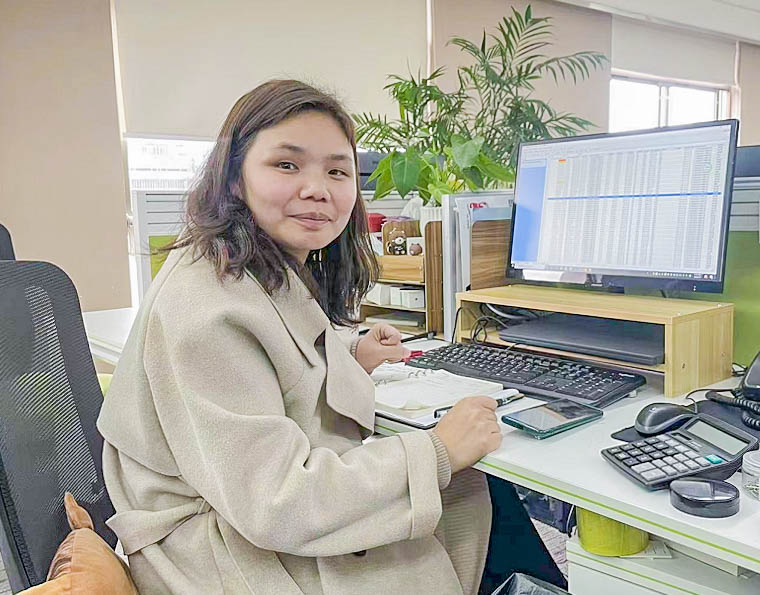 休產假期間,曹彩萍也會實時關注工廠群內的生產狀況,在工廠大貨質量和交期出現問題的時候,不論何時都會和跟單同事溝通解決問題,確保貨物準時出運。在休產假剛2個多月的時候,一天晚上她主動給我打電話詢問手上業務情況之后,認為早點回公司上班會對下半年業務開展有比較大幫助,于是主動申請提前上班。正因為這種拼勁,曹彩萍的個人業績也是全組最高的。