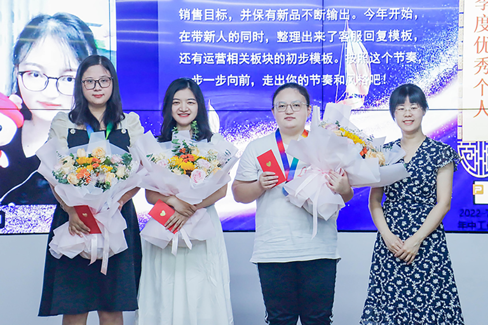 會議首先由優訊電商部總監胡燕分享了2022上半年相關業績數據以及目標完成情況。接下來進行了上半年的優秀員工的頒獎儀式,獲優員工和主管進行工作總結和分享。