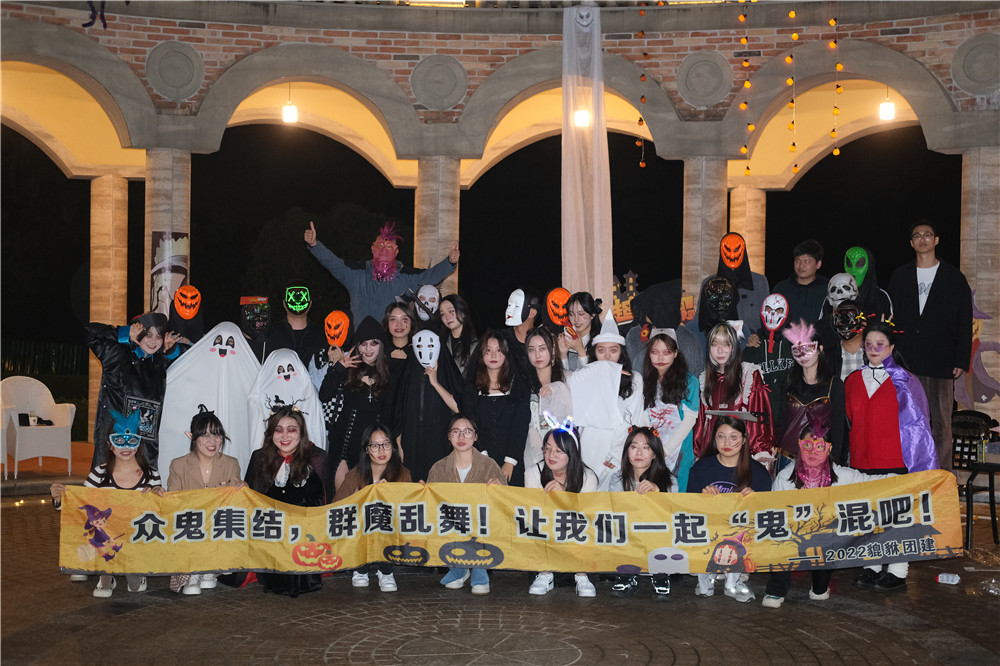 我們坐在大巴緩緩前行,一座古典的托斯卡納城堡映入眼簾,這便是今晚的狂歡之地。門邊的僵尸發(fā)出詭異的笑聲,墻上碩大的蜘蛛網(wǎng)散發(fā)著危險的氣息,這座古典的城堡即將被來自優(yōu)遠(yuǎn)公司的“貔貅”占領(lǐng),一場萬圣狂歡即將開始。