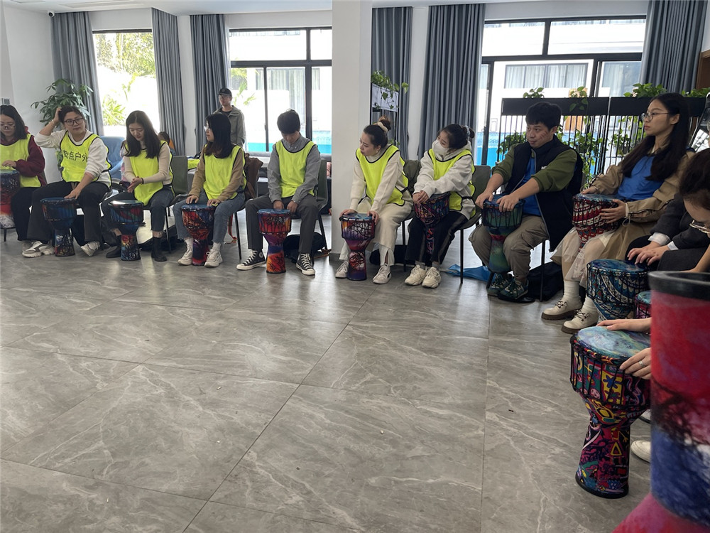 第二天我們體驗了非洲鼓,伴著音樂找鼓點。我們選舉的“酋長”和“酋長夫人”帶領各自隊伍展開比拼,奇招百出,最后大家合奏一曲,給這次旅行畫上了完美的句號。