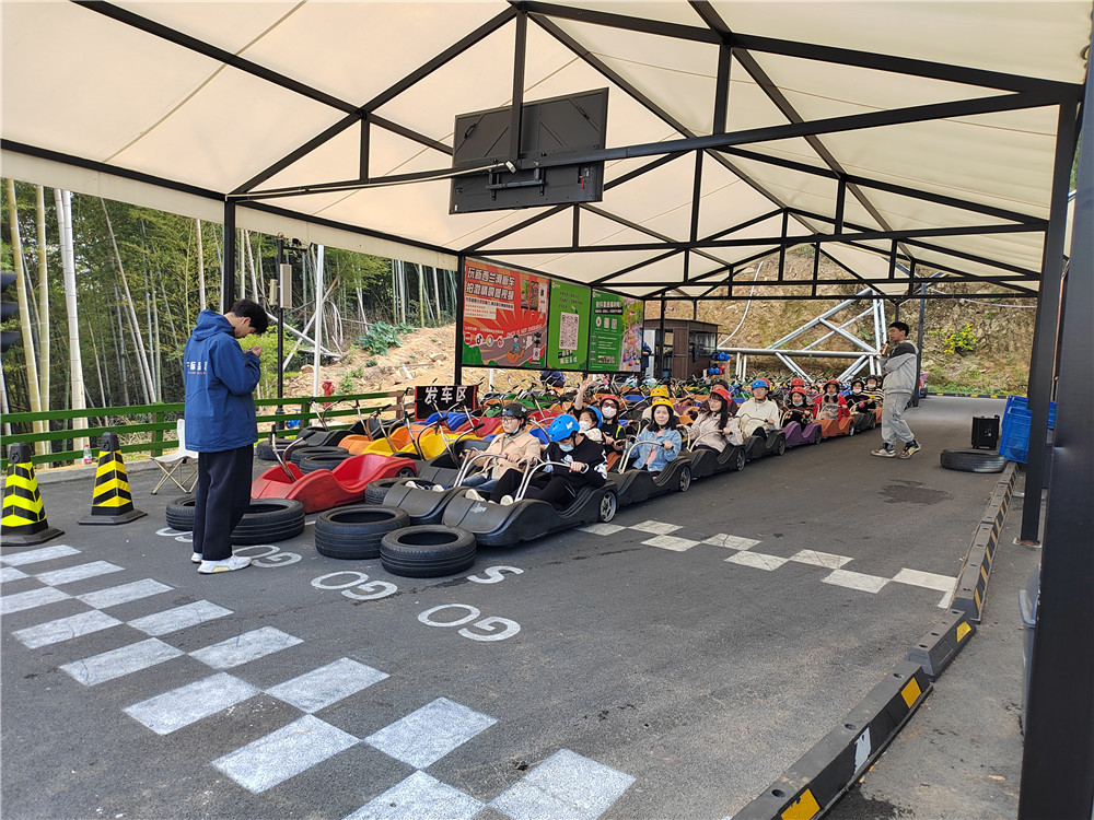 第二天,我們來到莫干山天際森谷山野樂園。天際滑板車、天際探險塔、高空玻璃觀景臺、飛天魔毯、馬場、生態(tài)滑草、七彩滑道、空中漫步、星球營地、霍比特小村……一群人像小朋友一樣,玩得樂此不疲。