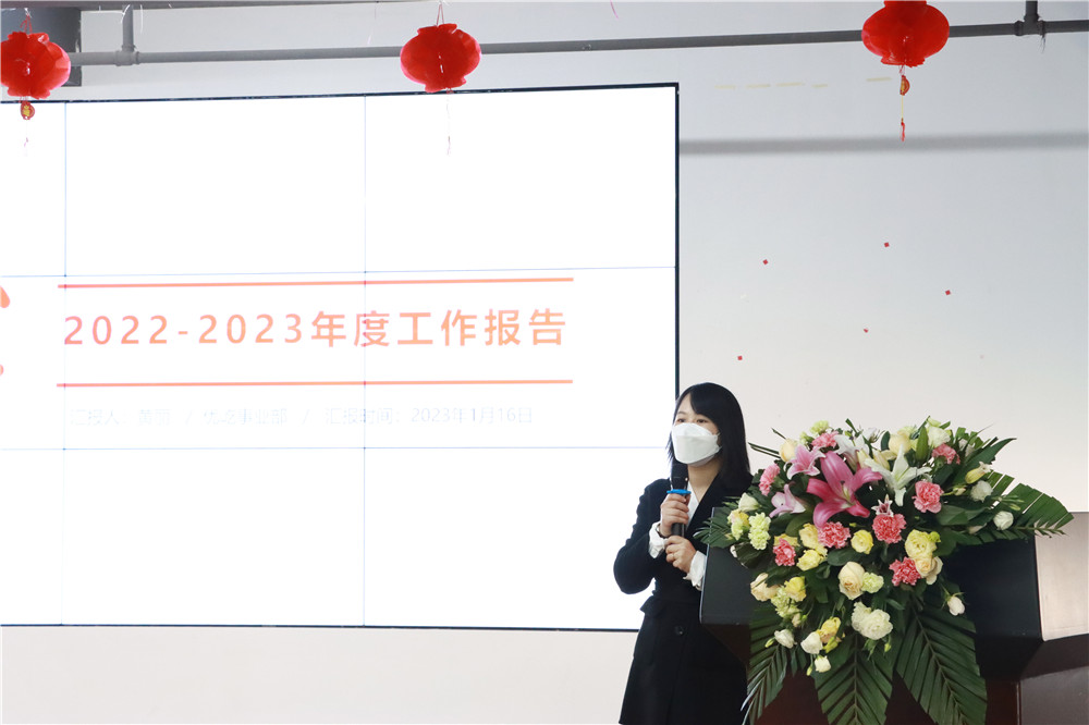 最后,黃麗總進(jìn)行會議總結(jié)。黃麗總感謝了全體小伙伴一年來的辛勤付出,交出了2022年的完美答卷,祝賀2022年的晉升和獲優(yōu)人員,希望他們不忘初心,砥礪前行。同時也希望全體同事能夠保持憂患意識,在完成工作任務(wù)的同時也要注重個人的身體健康。祝大家兔年大吉,來年大展宏“兔”!