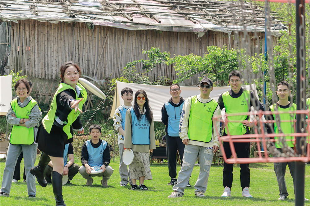 第一個游玩項目是團體飛盤,大家分為兩組,互相協作,配合默契,通過不斷練習為自己的團隊取得分數,享受了運動帶來的樂趣。接下來是期待已久的午餐時間,我們享用了烤全羊和地鍋雞,美食的味道讓人胃口大開,地鍋雞的濃湯讓人口齒留香,烤得恰到好處的羊肉更是錦上添花。下午,我們玩起了狼人殺、飛盤和撲克。在這個小小的下午茶時間里,我們互相分享著生活中的趣事,彼此之間的關系更加親密。晚上則是自助燒烤時間,五花肉在煎鍋上滋滋冒油,讓人不由得直咽口水。在夕陽下,看著橙黃天空、嗅著燒烤香氣、隨著裊裊炊煙、伴著歡聲笑語,一天的團建畫上了句號。
