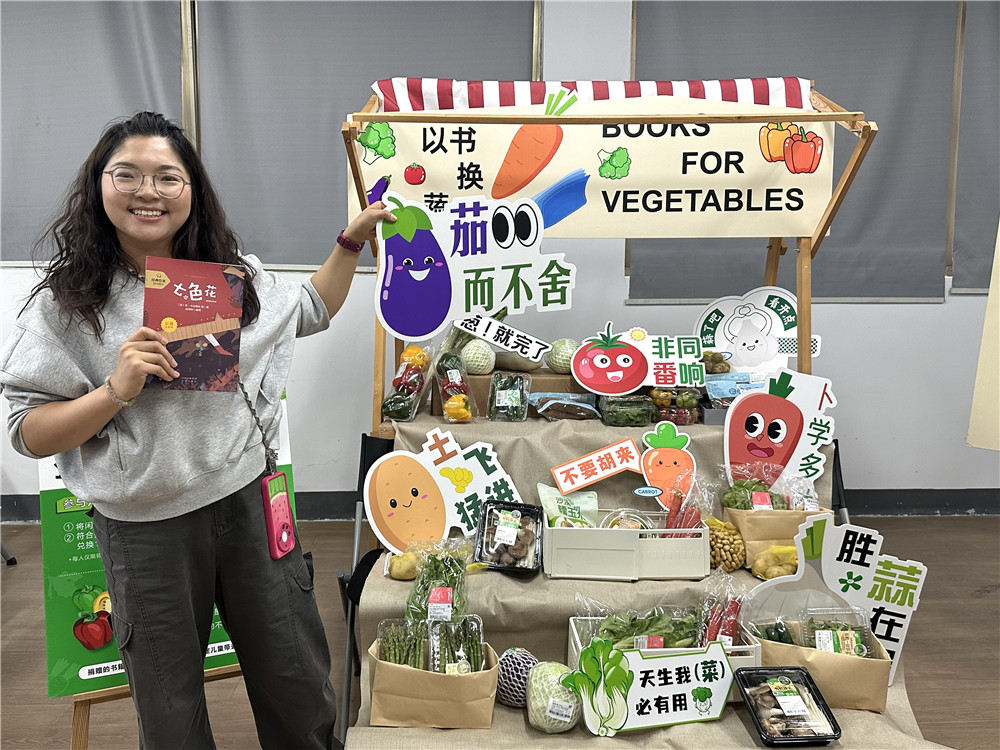 我們用沉睡的舊書喚醒新鮮的蔬菜,綠綠的菜苗,飽滿的種子,讓書香喚醒春天的綠意!